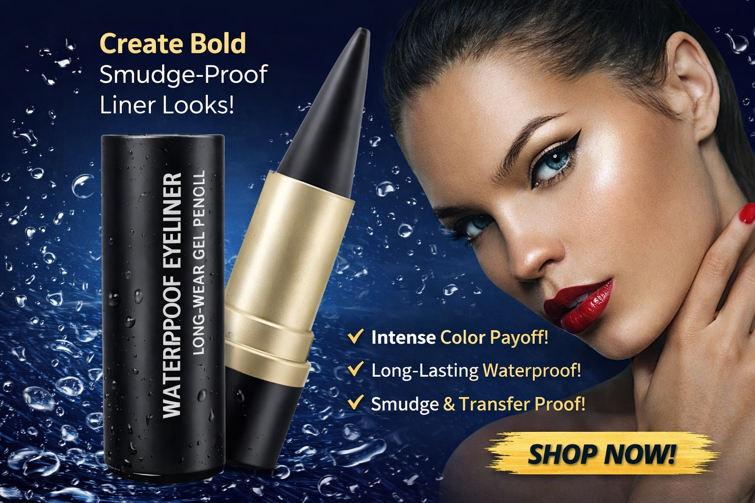 Very easy to use, even for beginners, it allows you to create a variety of elegant makeup looks and showcase your unique personality. The black eyeliner will make your eyes look bigger and create a mysterious and sexy cat-eye look.